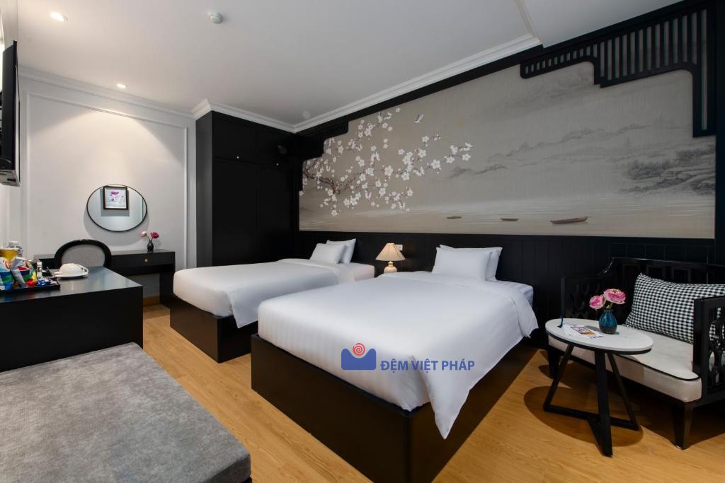 Sản phẩm không chỉ đáp ứng yêu cầu về độ bền, mà còn mang lại vẻ ngoài sang trọng, chuyên nghiệp, phù hợp với tiêu chuẩn cao của các khách sạn 3-5 sao. Độ bóng nhẹ của vải T250 tạo cảm giác cao cấp, trong khi các đường kẻ sọc tạo điểm nhấn thẩm mỹ, phù hợp với phong cách thiết kế hiện đại.