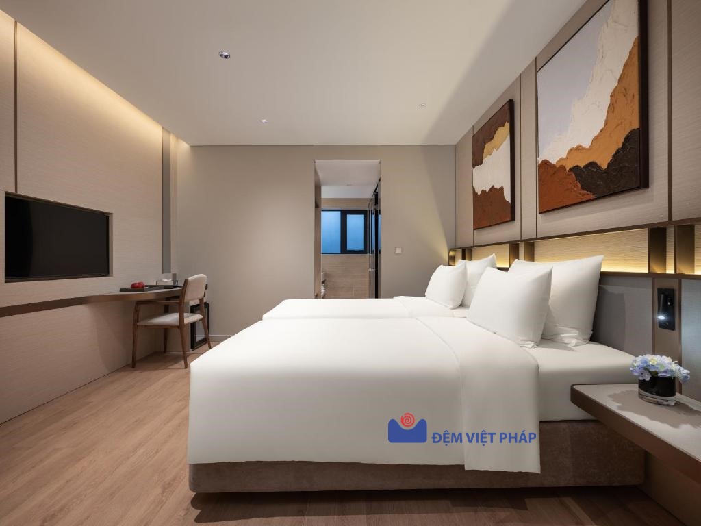 Trong ngành dịch vụ lưu trú, sự thoải mái và chất lượng nghỉ ngơi của du khách luôn là ưu tiên hàng đầu. Để mang lại trải nghiệm tuyệt vời, bộ chăn ga gối không chỉ cần đẹp mắt mà còn phải đảm bảo các tiêu chuẩn cao cấp về chất lượng và tiện ích. Bộ chăn ga gối trắng trơn 80% cotton 20% polyester T300 VP300T Đệm Việt Pháp chính là lựa chọn lý tưởng dành cho các khách sạn, resort và homestay từ 4 sao đến 5 sao. Với chất liệu cotton tự nhiên, thiết kế tinh tế, và tính ứng dụng cao, sản phẩm không chỉ giúp nâng cao trải nghiệm khách hàng mà còn tạo dấu ấn riêng biệt về sự chuyên nghiệp của đơn vị cung cấp dịch vụ.