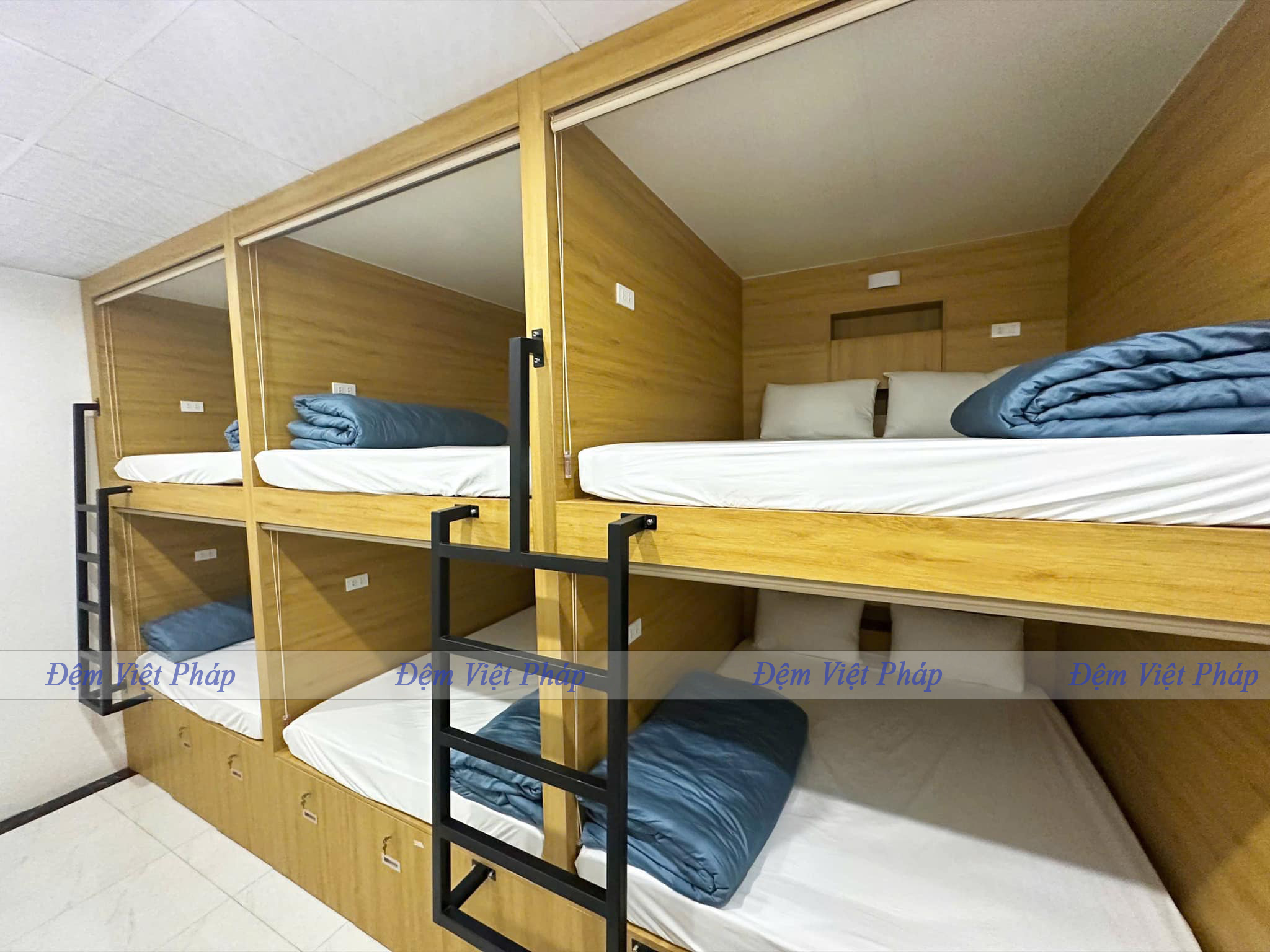 Dorm "Ống Kén" (Capsule Dorm): Thiết kế hiện đại, mỗi giường như một "cabin" riêng với đầy đủ tiện nghi cá nhân, mang lại sự riêng tư cao.